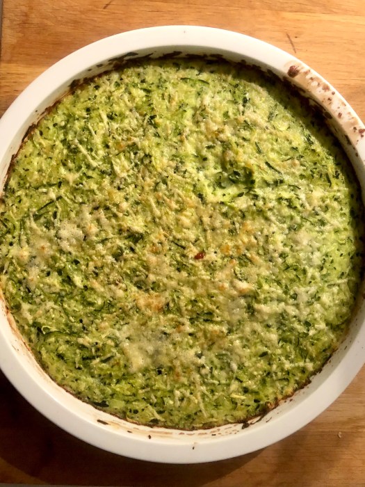 – Transfer to a lightly oiled baking dish and bake for 25mins at 180c/350f. Sprinkle a little more cheese on top and bake for a further 10 mins. It should be firm to the touch with a little bounce back.