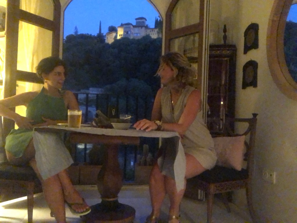 Attempting to use the self timer for our final dinner in this special spot, with the Alhambra always in the background .